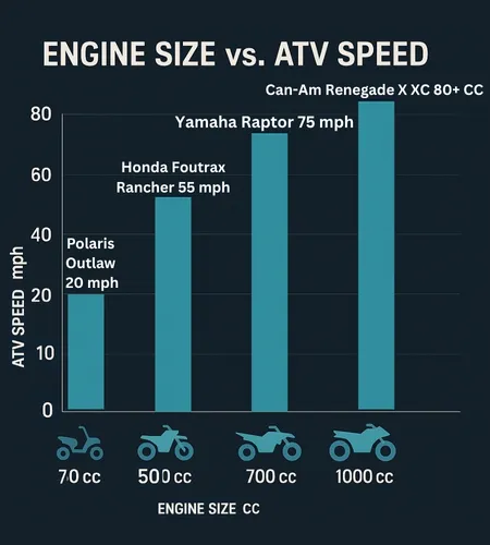 Generally, larger engines result in higher speeds. For instance, this short ATV top speed chart says: